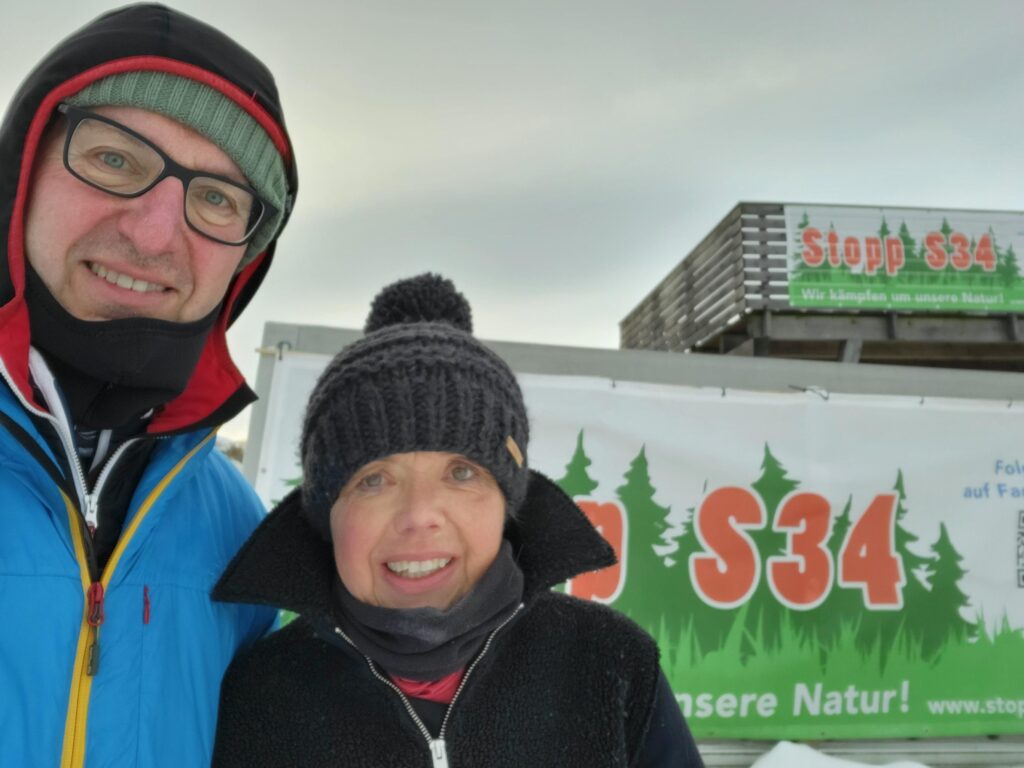 Ich unterstütze den Protest gegen die S34. Einerseits, weil wir nicht mehr Beton brauchen, keine unnötige Versiegelung mehr, sondern Grünflächen und Versickerungsflächen. Mehr Straßen bedeuten keine Entlastung, sondern zumindest mittelfristig mehr Verkehr. Hier brauchen wir Alternativen: Öffentlichen Verkehr, bessere Radverbindungen, kürzere Wege nahe am Wohnort.