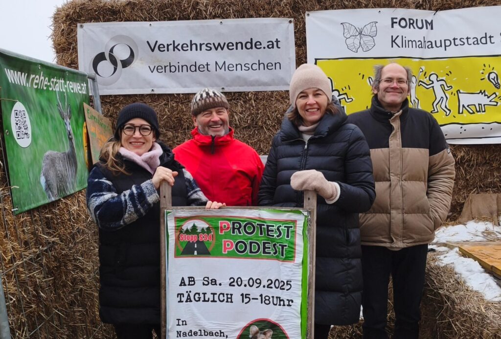 Per nachstehendem offenen Brief, der zum Grande Finale am Protest Podest zur Unterstützung vorgelegt wurde, wenden wir uns an die Politik, um der von mehr als 10.370 Menschen und zahlreichen triftigen Gründen getragenen Forderung nachzukommen, von der Umsetzung der Schnellstraße S34 endgültig abzusehen.