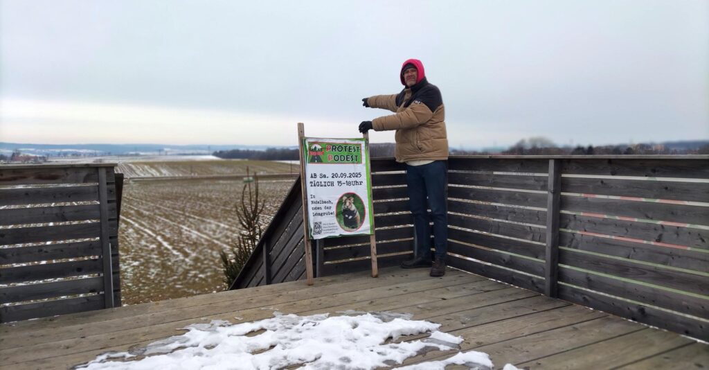 Ich finde es großartig, was Ihr da mit dem Protest Podest auf die Beine gestellt habt, und wie Ihr es schafft, jeden Tag bei Wind und Wetter durchzuhalten. Es ist erstaunlich, wie hier die Menschen über Partei- und Standesgrenzen hinweg zu Verbündeten für die gute Sache geworden sind.