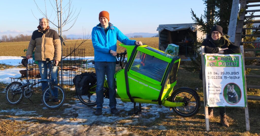 Unser Protest Podest bestand aus Stroh und befand sich direkt an der geplanten Trasse, im Bereich von Lehmgrube und Aussichtswarte südwestlich von Nadelbach: